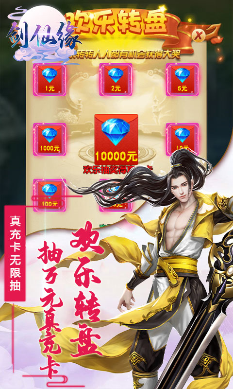④在線送歡樂券,歡樂轉盤無限抽取保底真充卡,最高可獲得萬元真充卡!