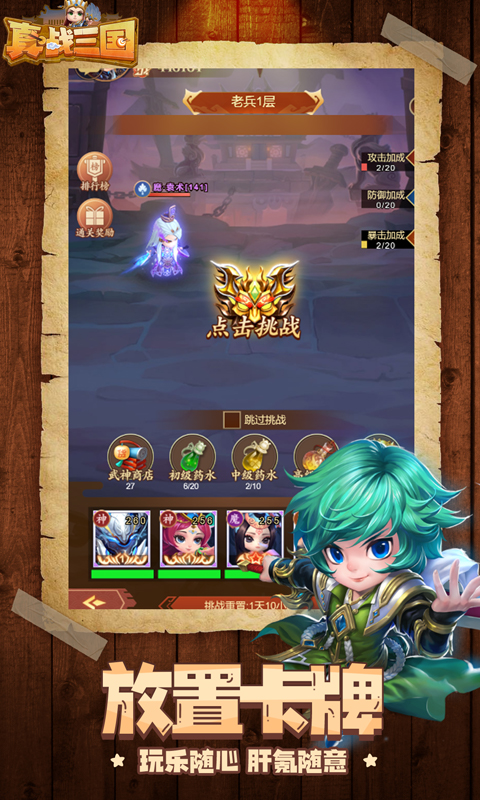 遊戲介紹:《真·戰三國》是最新的全民卡牌三國手遊,提供跨服交友、跨服競技,引導玩家進行跨服交流的放置手遊;無需時刻操作,專心體驗全屏技能特效的極致戰鬥體驗;武將大衆化,平民小白也能養關羽、趙雲等強力武將。 1、炸裂福利,闖關就送90連抽 2、福利滿滿,登錄領絕世神兵 3、藏寶洞窟,免費抽極品戰寵 大佬特權禮包:zzsg666