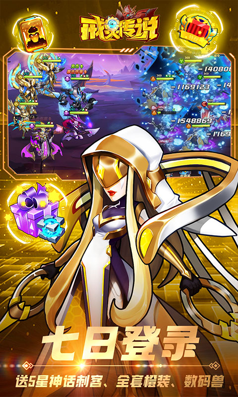 遊戲介紹:《戒靈傳說》是一款放置回合制類手機網絡遊戲。在遊戲中,玩家只需要放著挂機,就能獲得各種道具、材料,也可以通過副本、闖關、競技場等玩法獲得,提升英雄戰鬥力,並最終抵禦外星人入侵 1.七日登錄送5星神話刺客、全套橙裝、數碼獸 2.通關送100連抽 3.主線任務送5星神話牧師安布麗娜 4.通關送五星莫克提奧、阿波羅、榮耀騎士、艾米麗 5.推圖通關福利再加碼,只要你通關,我們就能一直送!在首發活動時間內,完成主線不同章節,不僅送神話五星,還送稀有禁器,更有200抽等你來搶! 6.完成主線第二十二章--送聖光陣營禁器暴風戰斧 7.開服第二天開啓幻夢試煉,跟隨歐若拉的步伐,任意體驗滿級光暗英雄,同時擁有英雄芯片40級強化大招,合理搭配陣容是取得勝利的關鍵,挑戰完成還可額外獲得十連抽~ 8.禮包碼輸入lb888,送五星聖光英雄 9.超級獨家福利,禮包碼輸入lb666送五星機甲神話英雄